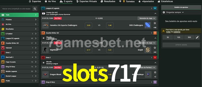 O slots717 oferece uma grande seleção de opções de apostas em e-sports com probabilidades competitivas